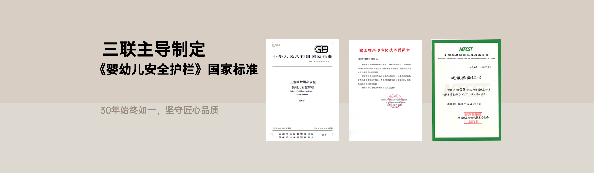 ? ? ? ? 近日,國家市場監(jiān)督管理總局、國家標(biāo)準(zhǔn)化管理委員會發(fā)布中華人民共和國國家標(biāo)準(zhǔn)公告(2025 年第 24 號),由瑞安市三聯(lián)塑料有限公司作為第四起草單位、公司產(chǎn)品經(jīng)理池俊偉擔(dān)任起草人的國家標(biāo)準(zhǔn)《兒童呵護(hù)用品安全 嬰幼兒安全護(hù)欄》(GB/T 46508-2025)正式獲批發(fā)布,并將于 2026 年 11 月 1 日起全面實(shí)施。這一標(biāo)準(zhǔn)的出臺,不僅填補(bǔ)了當(dāng)前嬰幼兒圍欄類目缺乏統(tǒng)